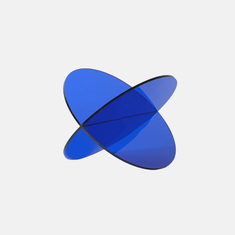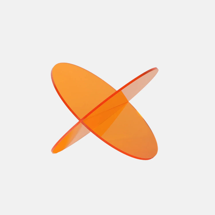 Simple design creates this beautiful minimalistic piece. The collision of these two-dimensional circular acrylic plates forms the structure of the table allowing for magazines and books to be held and displayed.