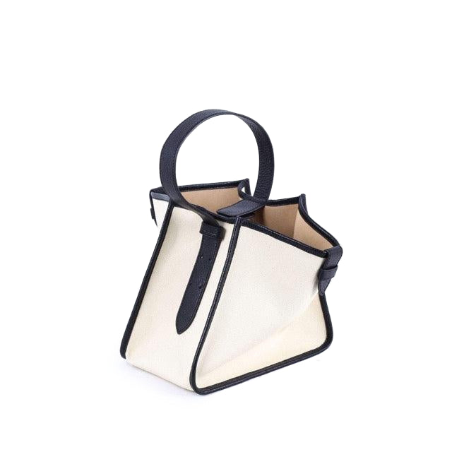 Large Square Commuter Tote Bag | Top Handle Bag in Canvas & Leather _ Black & White